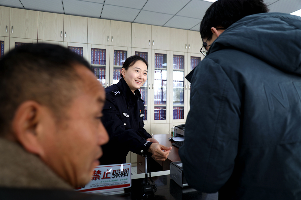 1月1日,安徽省舒城縣公安局柏林派出所戶籍窗口民警為群眾辦理戶籍業(yè)務(wù)。元旦假期,為方便回鄉(xiāng)群眾辦理戶籍業(yè)務(wù),該局認(rèn)真落實(shí)便民服務(wù)措施,開辟綠色“便民通道”,戶籍民警以貼心服務(wù),最大限度滿足轄區(qū)群眾需求。