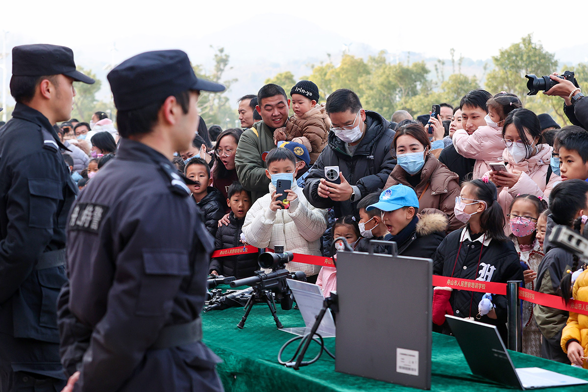 為迎接即將到來(lái)的第四個(gè)中國(guó)人民警察節(jié), 1月7日,浙江省舟山市公安局在市綜合警務(wù)訓(xùn)練基地舉行警營(yíng)開放日活動(dòng),市民現(xiàn)場(chǎng)零距離體驗(yàn)警務(wù)裝備、觀看警用無(wú)人機(jī)、警用摩托車、重裝防爆小隊(duì)技戰(zhàn)術(shù)等科目表演,增強(qiáng)市民對(duì)公安工作的理解和支持,營(yíng)造警民一家親的和諧氛圍。