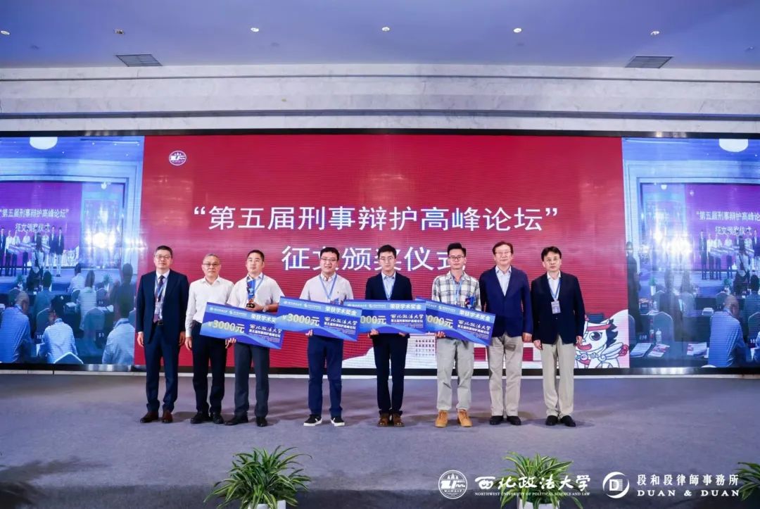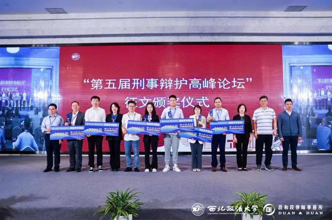 開幕式環(huán)節(jié),舉行了西北政法大學(xué)第五屆刑事辯護(hù)高峰論壇征文頒獎(jiǎng)儀式,為12位來自理論界與實(shí)務(wù)界的論文獲獎(jiǎng)作者頒發(fā)獎(jiǎng)狀、獎(jiǎng)杯。