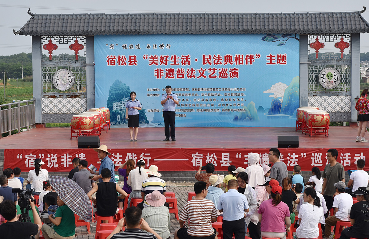 5月26日,安徽省宿松縣司法局“非遺普法”文藝演出隊(duì)走進(jìn)高嶺鄉(xiāng)青云村開展民法典普法宣傳。通過(guò)群眾喜聞樂(lè)見的文南詞、大鼓書、小品、歌曲聯(lián)唱、有獎(jiǎng)問(wèn)答等形式宣講法律知識(shí),增強(qiáng)村民尊法學(xué)法守法用法意識(shí)。