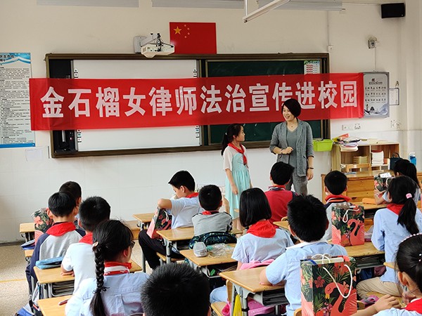 金石榴女律師一行走進駱駝實驗小學,為學生帶來一堂別開生面的法治課。