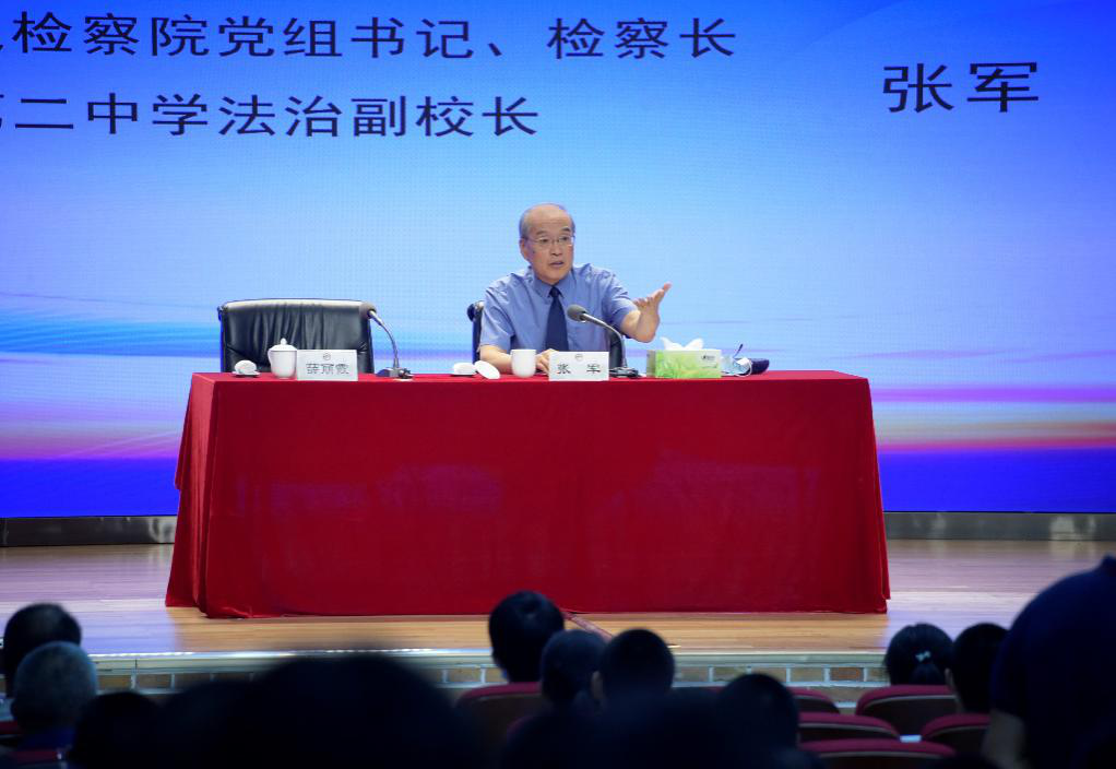 9月4日下午,北京二中法治副校長(zhǎng),最高人民檢察院黨組書記、檢察長(zhǎng)張軍第三次走進(jìn)北京二中開講法治課。