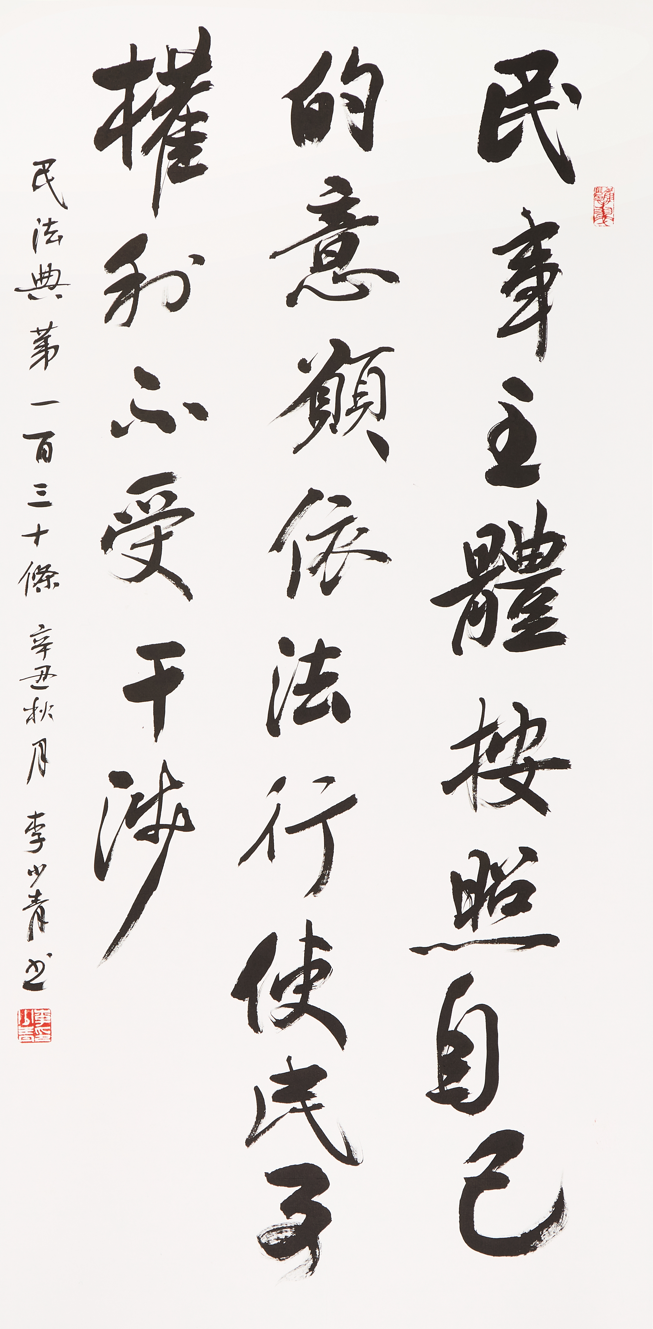 “書·法”活動以書寫《中華人民共和國民法典》法條開筆,未來將對準(zhǔn)更多的法律。