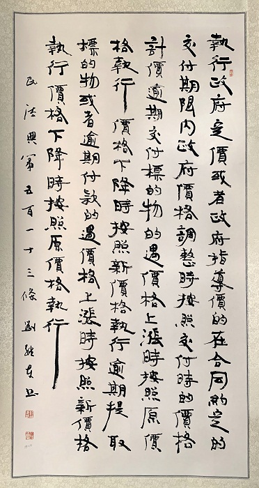 民法典第五百一十三條 執(zhí)行政府定價或者政府指導價的,在合同約定的交付期限內政府價格調整時,按照交付時的價格計價。逾期交付標的物的,遇價格上漲時,按照原價格執(zhí)行;價格下降時,按照新價格執(zhí)行。逾期提取標的物或者逾期付款的,遇價格上漲時,按照新價格執(zhí)行;價格下降時,按照原價格執(zhí)行。