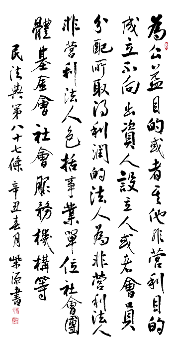 民法典第八十七條 為公益目的或者其他非營利目的成立,不向出資人、設立人或者會員分配所取得利潤的法人,為非營利法人。