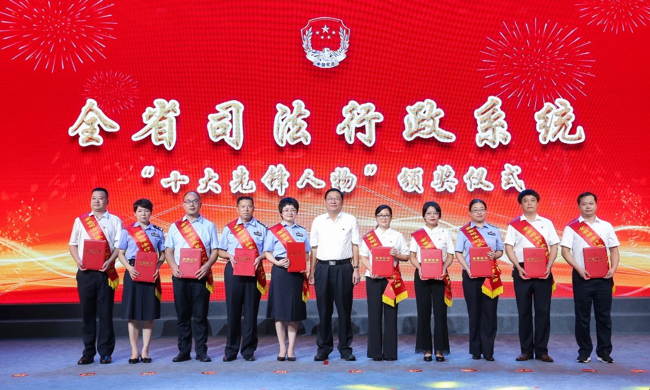 ▲江西省政府副省長、省公安廳廳長秦義為全省司法行政系統(tǒng)”十大先鋒人物“頒獎