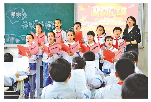 2018年12月3日,天津市實(shí)驗(yàn)小學(xué)的孩子們在老師的帶領(lǐng)下誦讀學(xué)習(xí)憲法。 新華社記者 劉東岳 攝