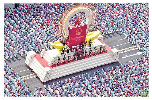2019年10月1日上午,慶祝中華人民共和國成立70周年大會在北京天安門廣場隆重舉行。這是“民主法治”方陣。 法治日報(bào)全媒體記者 王建軍 攝