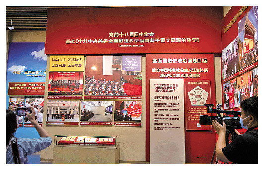 2021年6月25日,媒體記者在中國共產(chǎn)黨歷史展覽館拍攝法治建設(shè)成就相關(guān)展板。 法治日報(bào)全媒體記者 王建軍 攝