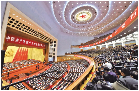 2017年10月24日,中國共產(chǎn)黨第十九次全國代表大會勝利閉幕。大會通過了關于十八屆中央委員會報告的決議。報告中八個“明確”中指出“明確全面推進依法治國總目標是建設中國特色社會主義法治體系、建設社會主義法治國家”,十四個“堅持”中指出“堅持全面依法治國”。 可為 攝