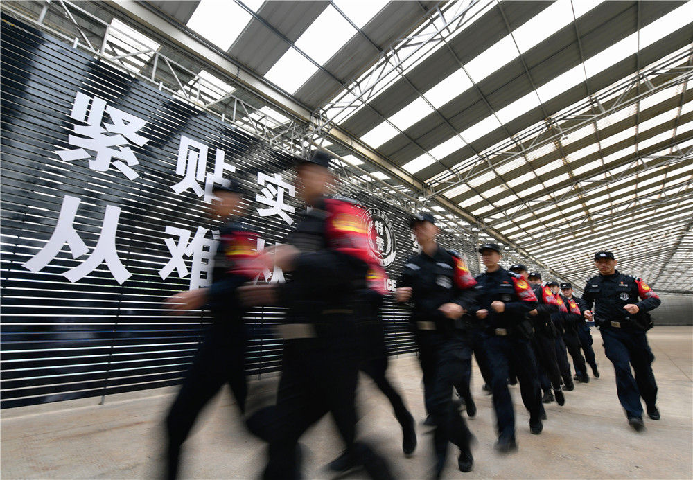 “漳州110”民警們?cè)谟?xùn)練基地進(jìn)行基礎(chǔ)體能訓(xùn)練(1月7日攝)?!罢闹?10”是人民群眾對(duì)福建省漳州市公安局巡特警支隊(duì)直屬大隊(duì)的簡(jiǎn)稱。自1990年8月成立以來,這個(gè)代號(hào)守護(hù)了當(dāng)?shù)匕傩?0余年。新華社記者 魏培全 攝
