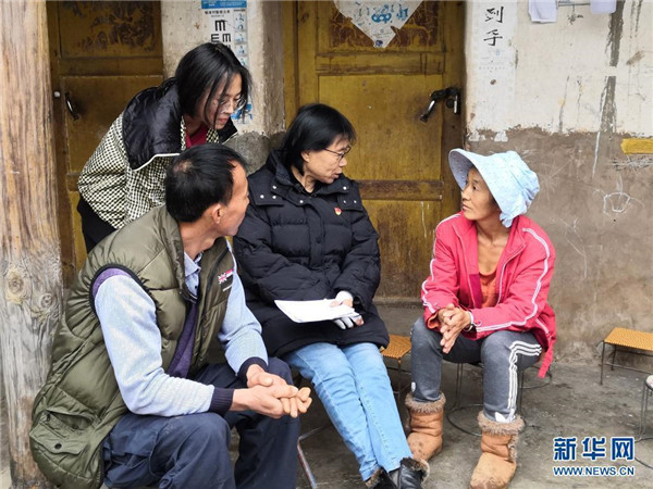 2月9日,張桂梅(右二)在家訪時與學(xué)生家長交談。新華社發(fā)(王秀麗 攝)