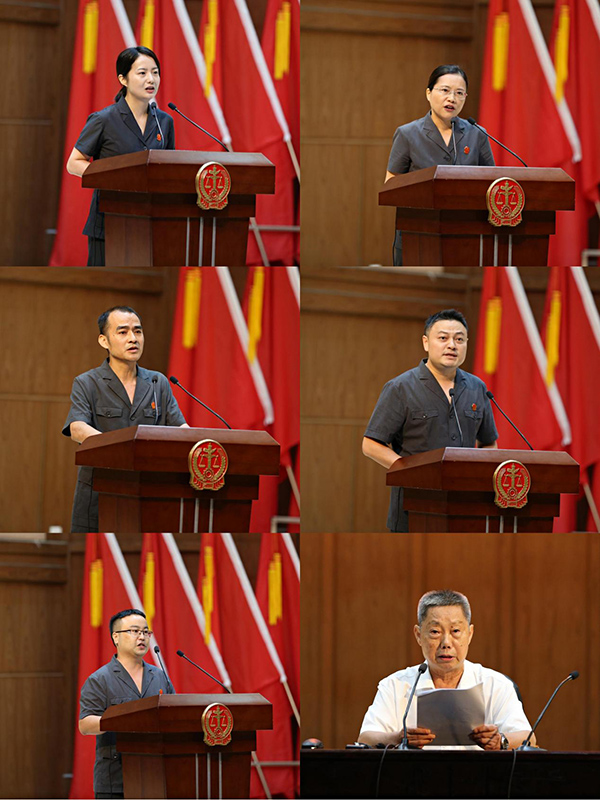 報告會上,5名英模事跡報告團成員作報告。報告團成員有2名是湖南法院英模生前戰(zhàn)友,3名是湖南法院優(yōu)秀法官代表。湖南高院民一庭法官助理龍菲深情追憶湖南高院審監(jiān)一庭原副庭長、“全國模范法官”“全國三八紅旗手”“湖南省優(yōu)秀共產(chǎn)黨員”周春梅同志用生命捍衛(wèi)公平正義的英雄事跡。湖南高院民三庭副庭長陳小珍深情講述了她的同事徐康同志深耕審判業(yè)務(wù),始終躬行為民的感人事跡?!叭珖鴥?yōu)秀法官”、長沙中院民三庭副庭長何豪杰講述了自己遵循“堂堂正正做人,明明白白辦事”的行為準則,求真務(wù)實、依法公正辦案的感人故事?!叭珖鴥?yōu)秀法官”、“全國法院十大亮點人物”、“湖南省優(yōu)秀青年衛(wèi)士”、湘潭縣法院刑事審判庭庭長崔贛講述了自己堅守基層一線、踐行使命擔當、守護一方平安的動人事跡?!叭珖ㄔ喝嗣穹ㄍスぷ飨冗M個人”、“全國法院辦案標兵”、湘西龍山縣人民法院刑事審判庭庭長田代飛以《土家山寨的“喳西呔”》為題講述了自己經(jīng)過不懈努力,讓法律走進老百姓的生活,在每一起案件的公正審判與耐心調(diào)解中,滿足人民群眾對公平正義期待的感人事跡。