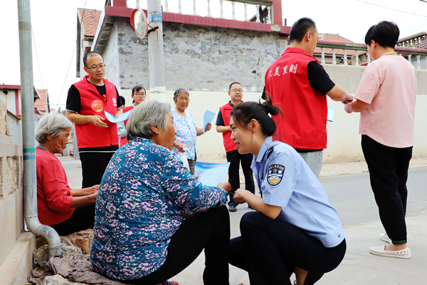 圖為民警入村開展防范電信網(wǎng)絡詐騙犯罪宣傳。
