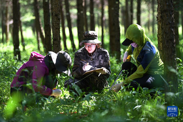 工作人員在塞罕壩機械林場采集數(shù)據(jù)(2017年7月12日攝)。新華社記者 王曉 攝