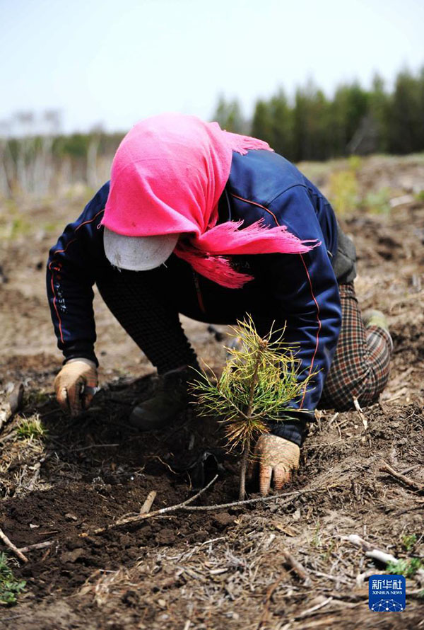 塞罕壩機械林場的員工在植樹(2014年5月13日攝)。新華社記者 王曉 攝