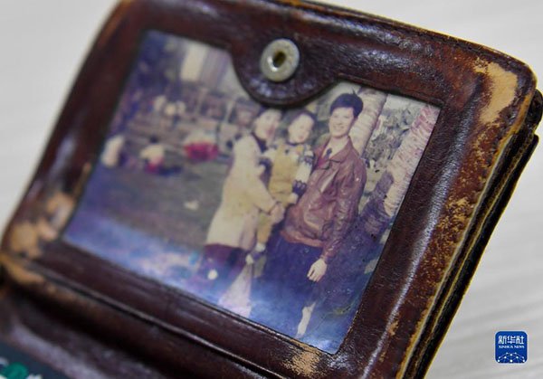潘東升使用多年的錢包里珍藏著多年前一家人的合影(2021年10月16日攝)。新華社發(fā)(福州市公安局供圖)