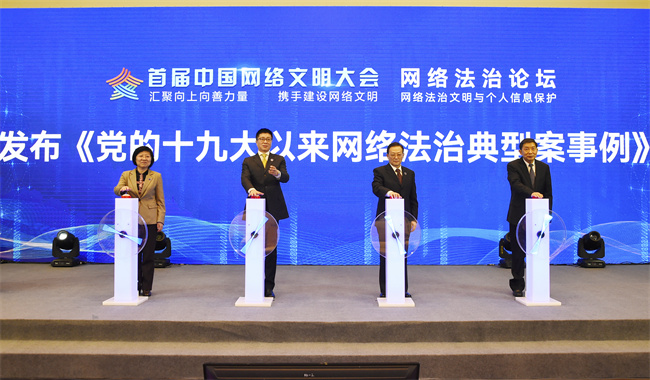 論壇現(xiàn)場發(fā)布《黨的十九大以來網(wǎng)絡法治典型案事例》。