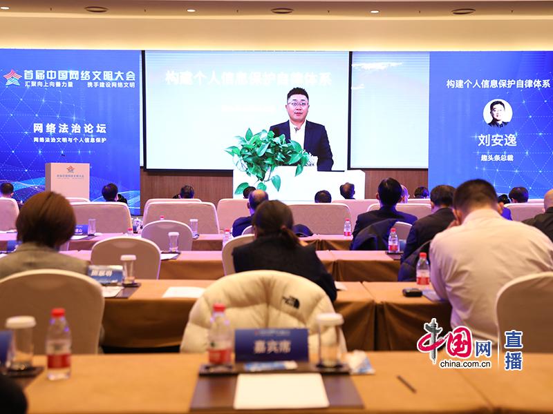 在主旨發(fā)言環(huán)節(jié),趣頭條總裁劉安逸以“構(gòu)建個(gè)人信息保護(hù)自律體系”為題進(jìn)行了發(fā)言交流,以下是發(fā)言內(nèi)容。