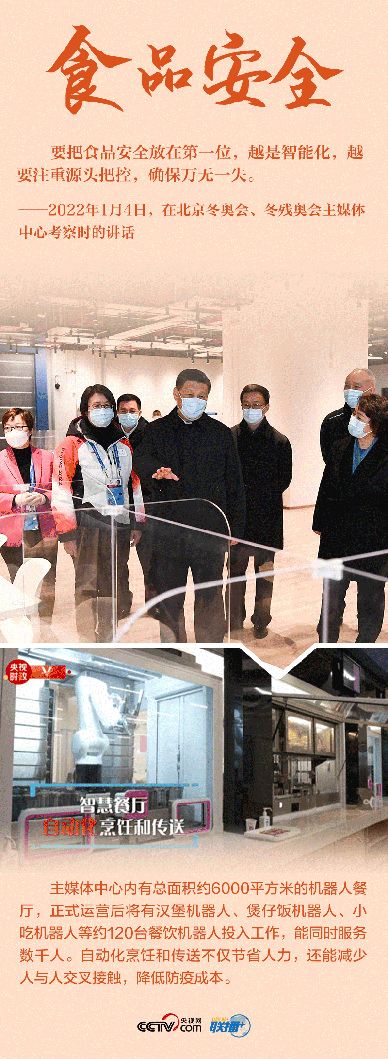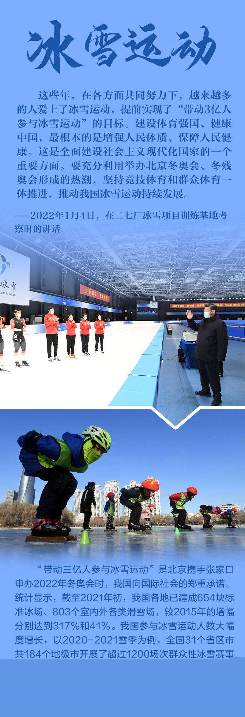 “今天是元旦后上班第一天,我來(lái)專(zhuān)題調(diào)研北京冬奧會(huì)、冬殘奧會(huì)籌備工作,主要是來(lái)給大家鼓勁加油。”1月4日,北京冬奧會(huì)開(kāi)幕倒計(jì)時(shí)一個(gè)月之際,習(xí)近平總書(shū)記在北京深入體育場(chǎng)館、媒體中心、訓(xùn)練基地等,實(shí)地了解2022年冬奧會(huì)、冬殘奧會(huì)籌辦備賽情況。