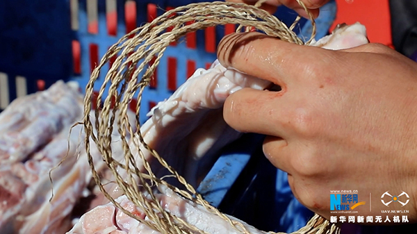 生曬臘味是當(dāng)?shù)厝说膫鹘y(tǒng),村民正在制臘味。新華網(wǎng)發(fā)(羅素玲 攝)