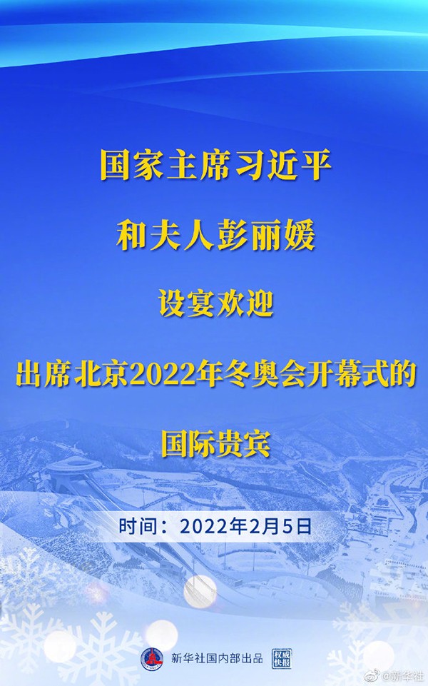 習(xí)近平和彭麗媛設(shè)宴歡迎出席北京2022年冬奧會(huì)開幕式的國(guó)際貴賓