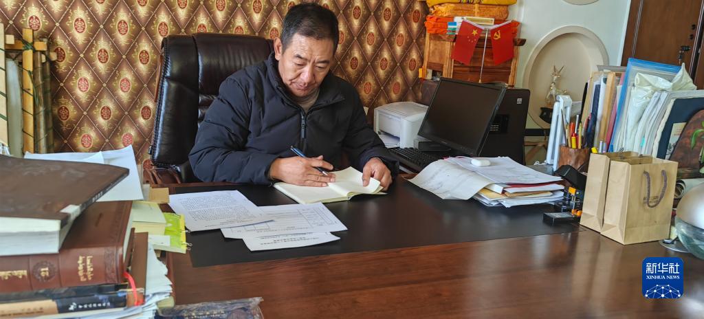 羅布斯達(dá)在整理調(diào)研筆記。 新華社記者 范帆 攝