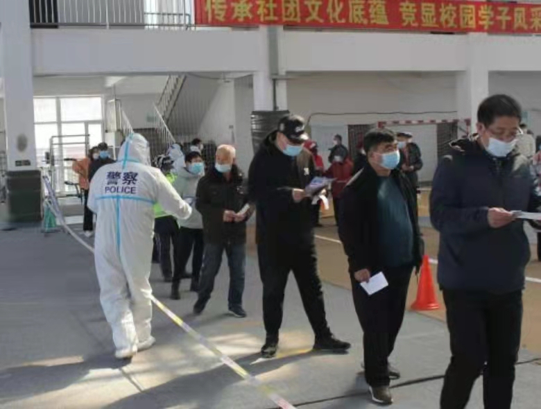 為及時有效發(fā)現(xiàn)和控制傳染源,保障人民群眾生命安全和身體健康,2022年3月17日,遼寧省沈陽市啟動為期兩天的全民核酸檢測。為了確保核酸檢測有序進(jìn)行,沈陽市公安局緊急抽調(diào)市、區(qū)兩級公安機(jī)關(guān)警力,迅速組織9828名公安民警、輔警及7981名“盛京使者”志愿者投入核酸檢測安保工作。他們堅守在全市兩千余個核酸檢測采樣點,在乍暖還寒的初春給沈城人民送去溫暖和平安。