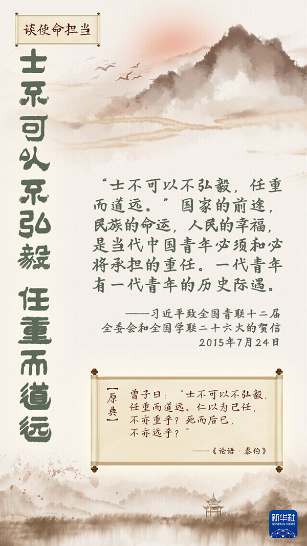 黨的十八大以來(lái),習(xí)近平總書記經(jīng)常引用古語(yǔ)勉勵(lì)青年,與他們談人生理想、談求知求學(xué)、談使命擔(dān)當(dāng)。