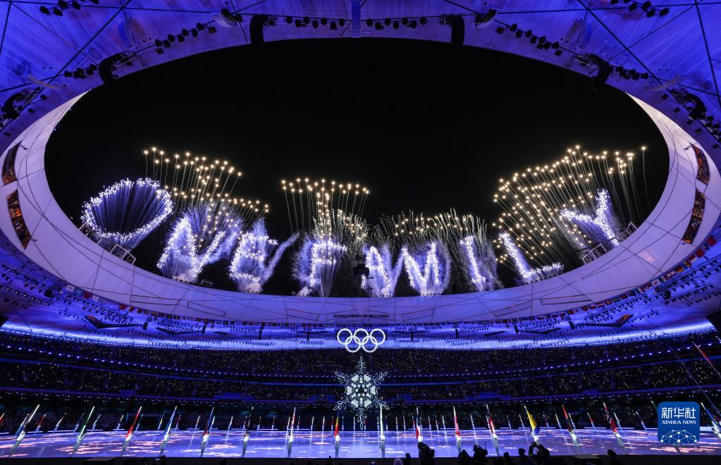 2022年2月20日晚的國(guó)家體育場(chǎng)流光溢彩,充滿依依惜別的濃濃情誼?!疤煜乱患摇弊謽拥难婊鹪凇傍B(niǎo)巢”上空粲然綻放,舉世矚目的北京冬奧會(huì)圓滿落下帷幕。
