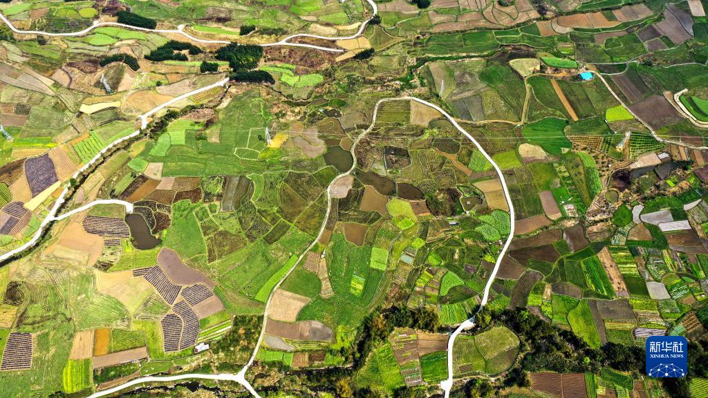 廣西融安縣潭頭鄉(xiāng)新桂村的春耕田園景色(3月17日攝,無(wú)人機(jī)照片)。新華社記者 張愛(ài)林 攝