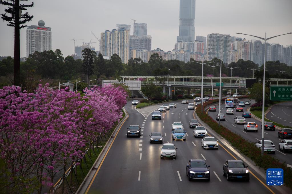 這是3月21日在深圳沙河西路拍攝的車(chē)流。新華社發(fā)(劉羽潔 攝)