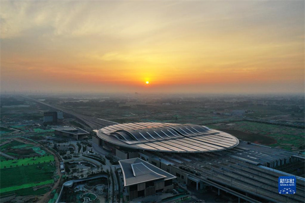 這是京雄城際鐵路雄安站(2021年7月1日攝,無(wú)人機(jī)照片)。新華社記者 牟宇 攝