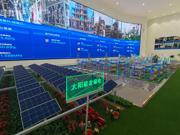 寧夏寶豐能源集團(tuán)太陽(yáng)能電解水制氫項(xiàng)目沙盤。(新華社記者靳赫攝)