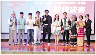 圖為今年5月31日,鄧鵬飛(左5)帶領(lǐng)同學(xué)們參加第十屆“挑戰(zhàn)杯”云南省大學(xué)生創(chuàng)業(yè)計劃競賽。受訪者供圖
