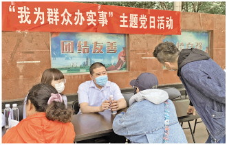圖為裴昱(中)在“我為群眾辦實事”主題黨日活動上為群眾答疑解惑。 受訪者供圖