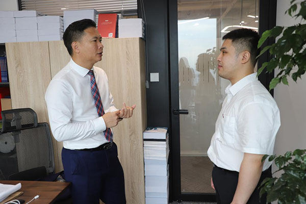 實習(xí)律師的身份并沒有讓盤銘徑停下腳步,除了大量檢索勞動爭議案件進(jìn)行學(xué)習(xí)外,他的手機(jī)里最多的是與指導(dǎo)老師蔡飛的問答交流?!八且粋€專業(yè)而且負(fù)責(zé)的助手?!辈田w說。