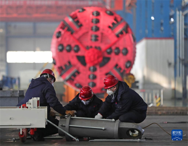 工人在沈陽(yáng)北方重工集團(tuán)有限公司盾構(gòu)機(jī)分廠車(chē)間工作(2020年2月10日攝)。 新華社記者 楊青 攝