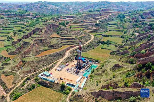 這是在山西省長治市武鄉(xiāng)縣拍攝的一處煤層氣鉆井現(xiàn)場(無人機照片,2021年6月22日攝)。新華社記者 曹陽 攝