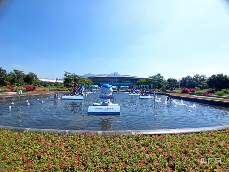 在會展中心前廣場,集多種福州元素于一體的“有福之州”城市形象標識、大小各異的立體“數(shù)”字、憨態(tài)可掬的“數(shù)娃”等造型布景,讓人眼前一亮(央廣網(wǎng)記者 羅曉英 攝)