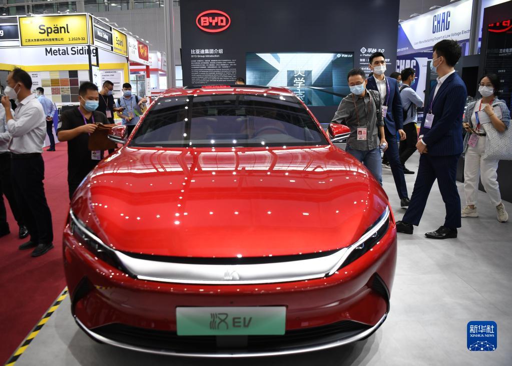 這是在第130屆廣交會(huì)上拍攝的比亞迪新能源汽車(2021年10月15日攝)。新華社記者 鄧華 攝