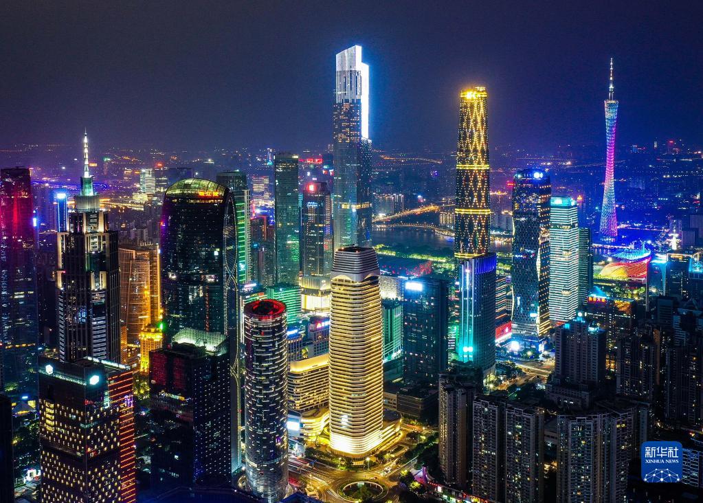 廣州市珠江新城夜景(2020年10月2日攝,無人機(jī)照片)。新華社記者 劉大偉 攝