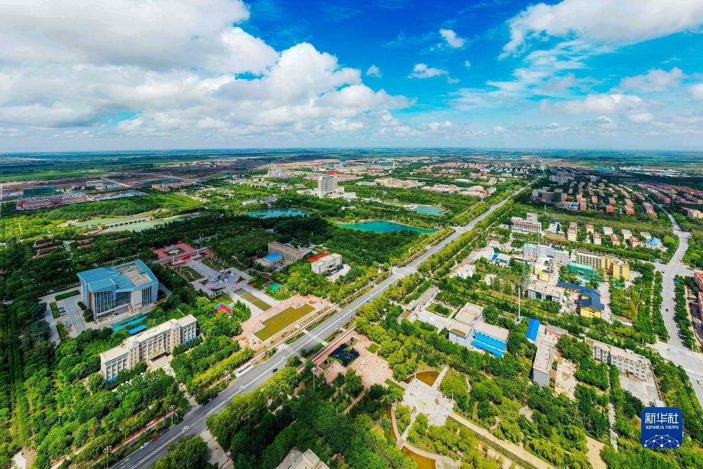這是2021年7月22日拍攝的新疆生產(chǎn)建設兵團第三師圖木舒克市(無人機照片)。新華社發(fā)(王俊龍 攝)