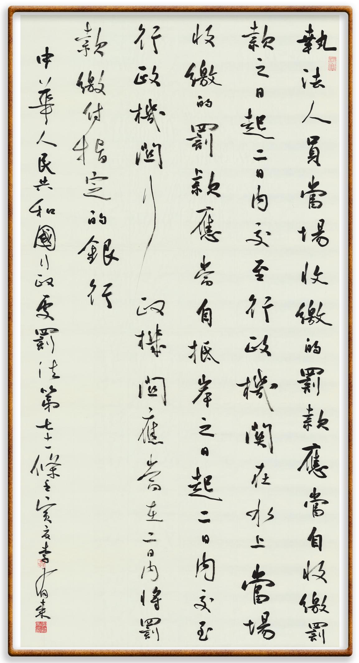 繼《中華人民共和國民法典》《中華人民共和國土地管理法》《中華人民共和國土地管理法實施條例》《中華人民共和國法律援助法》之后,法治日報社聯(lián)合北京市司法局、北京書法家協(xié)會,將筆端對準(zhǔn)《中華人民共和國憲法》和《中華人民共和國行政處罰法》。