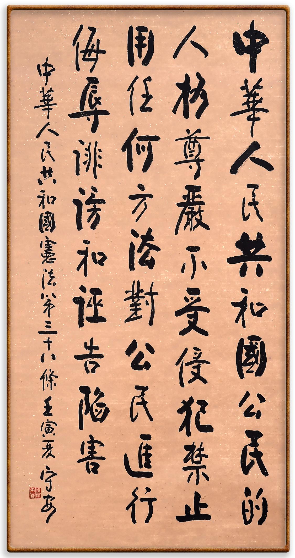 繼《中華人民共和國民法典》《中華人民共和國土地管理法》《中華人民共和國土地管理法實施條例》《中華人民共和國法律援助法》之后,法治日報社聯(lián)合北京市司法局、北京書法家協(xié)會,將筆端對準(zhǔn)《中華人民共和國憲法》和《中華人民共和國行政處罰法》。